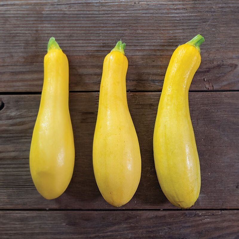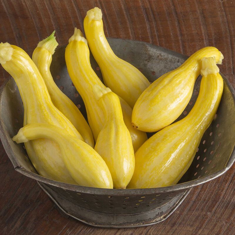Yellow crookneck with vibrant color, gourmet flavor, distinctive ridges, and subtle striping. Tempest's 4-7" fruits have a rich, nutty flavor and pleasantly firm texture. Versatile in the kitchen, it retains its shape, texture, and color through a multitude of cooking methods, from grilling and roasting to pickling and braising.