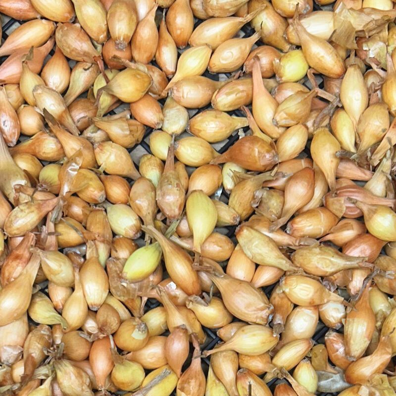 Can be planted in the spring for a "green top" yellow cooking onion by the beginning of July and a dried bulb by the end of July. Fills the gap between last year's storage onions and this year's crop from seed. Uniform, sweet, and flavorful, Shakespeare bulbs have excellent storage potential when well-cured.