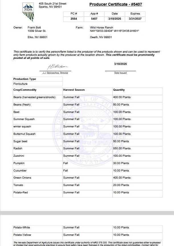 Producers Permit State of NV 2026